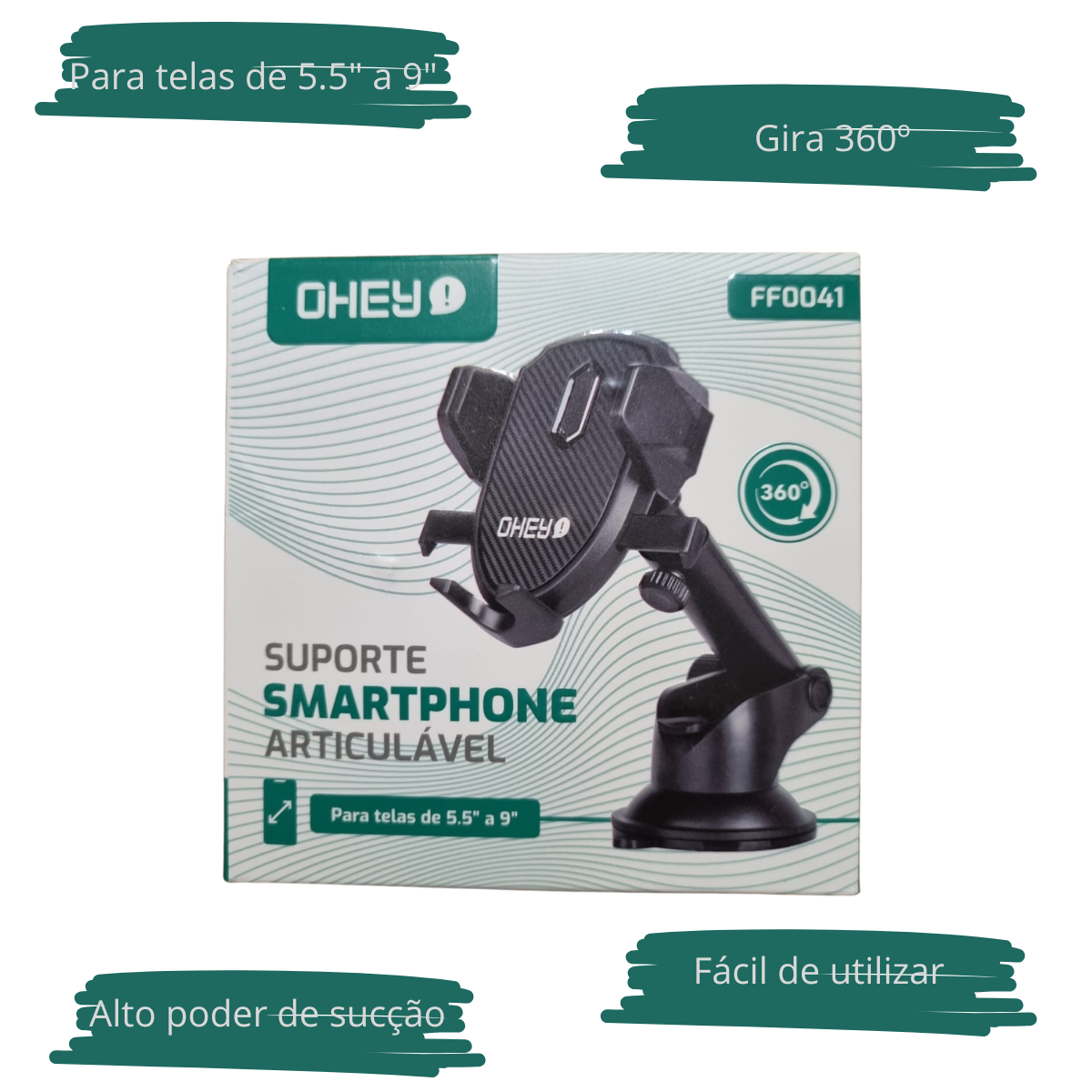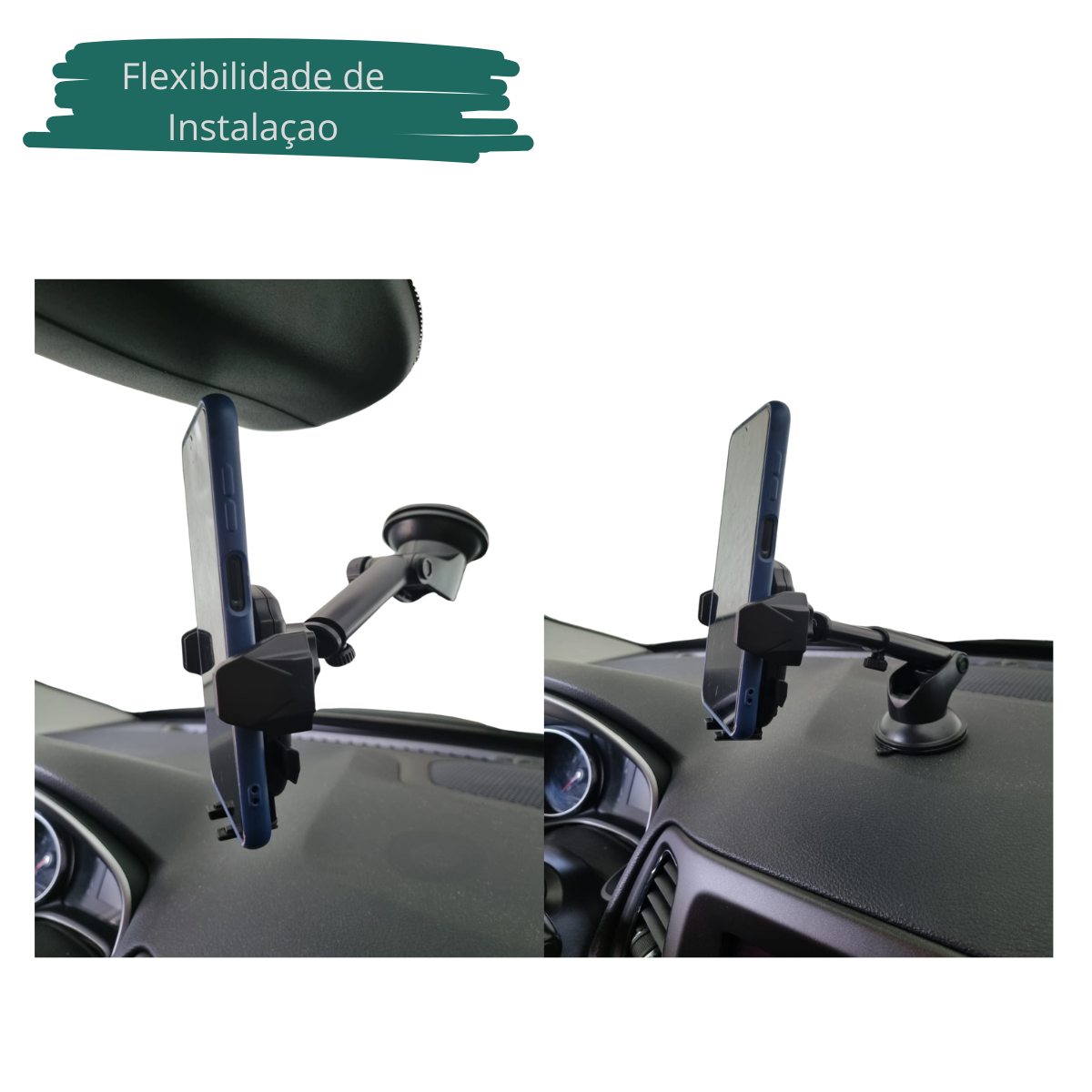 Suporte Smartphone Articulável, ideal para usar no seu veículo. Possui alto poder de sucção, ventosa + trava de pressão, garantindo estabilidade e segurança para o seu aparelho. Desenvolvido para qualquer superfície lisa não porosa.